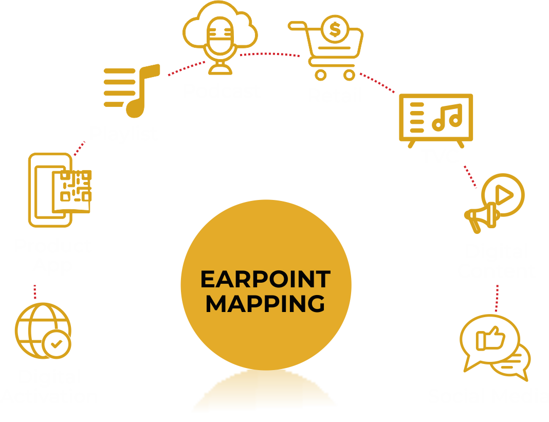 The Earpoint Mapping Exercise is a detailed exploration of the brand touchpoint or earpoints where the Sonic Identity is most likely to be heard.